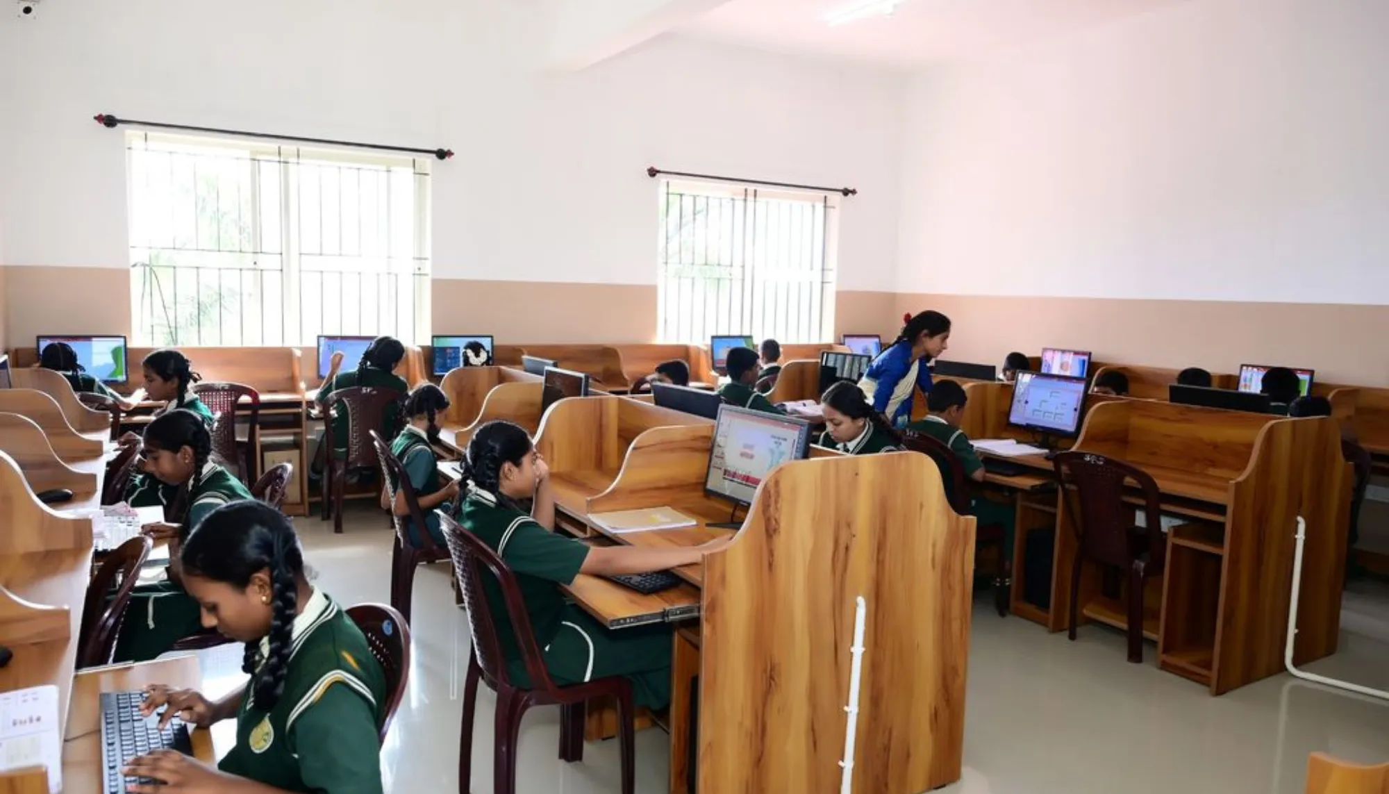 A modern computer lab with the latest systems and internet access to enhance digital literacy and technological skills.